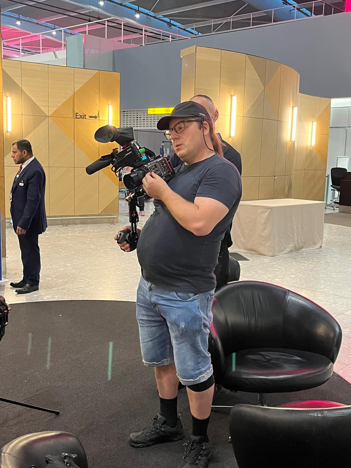 - Sasha testing out his camera and making sure it’s all connected up to the monitor to adjust shots live