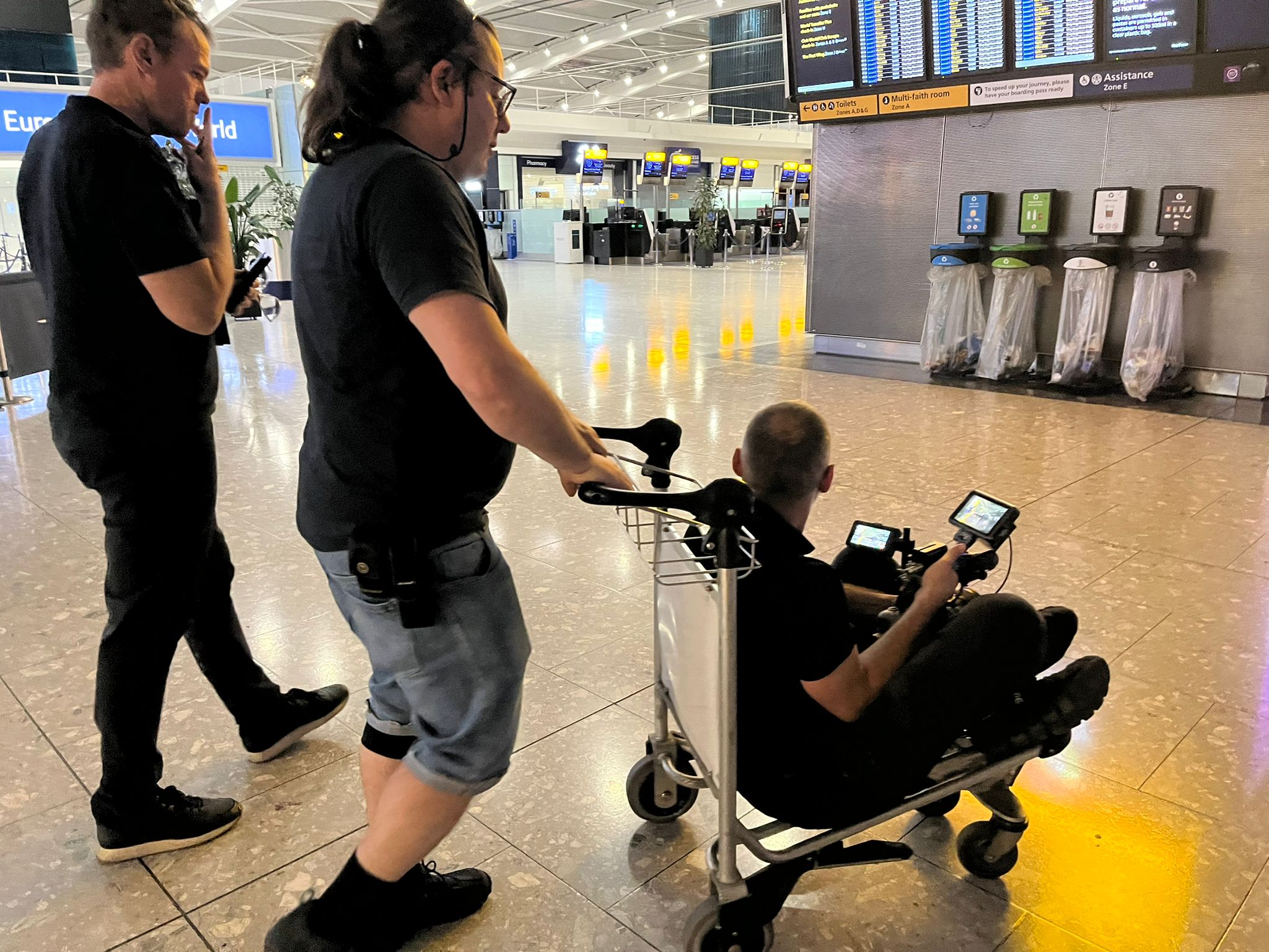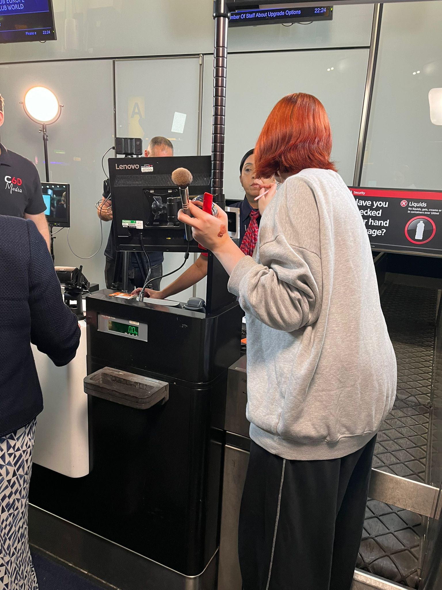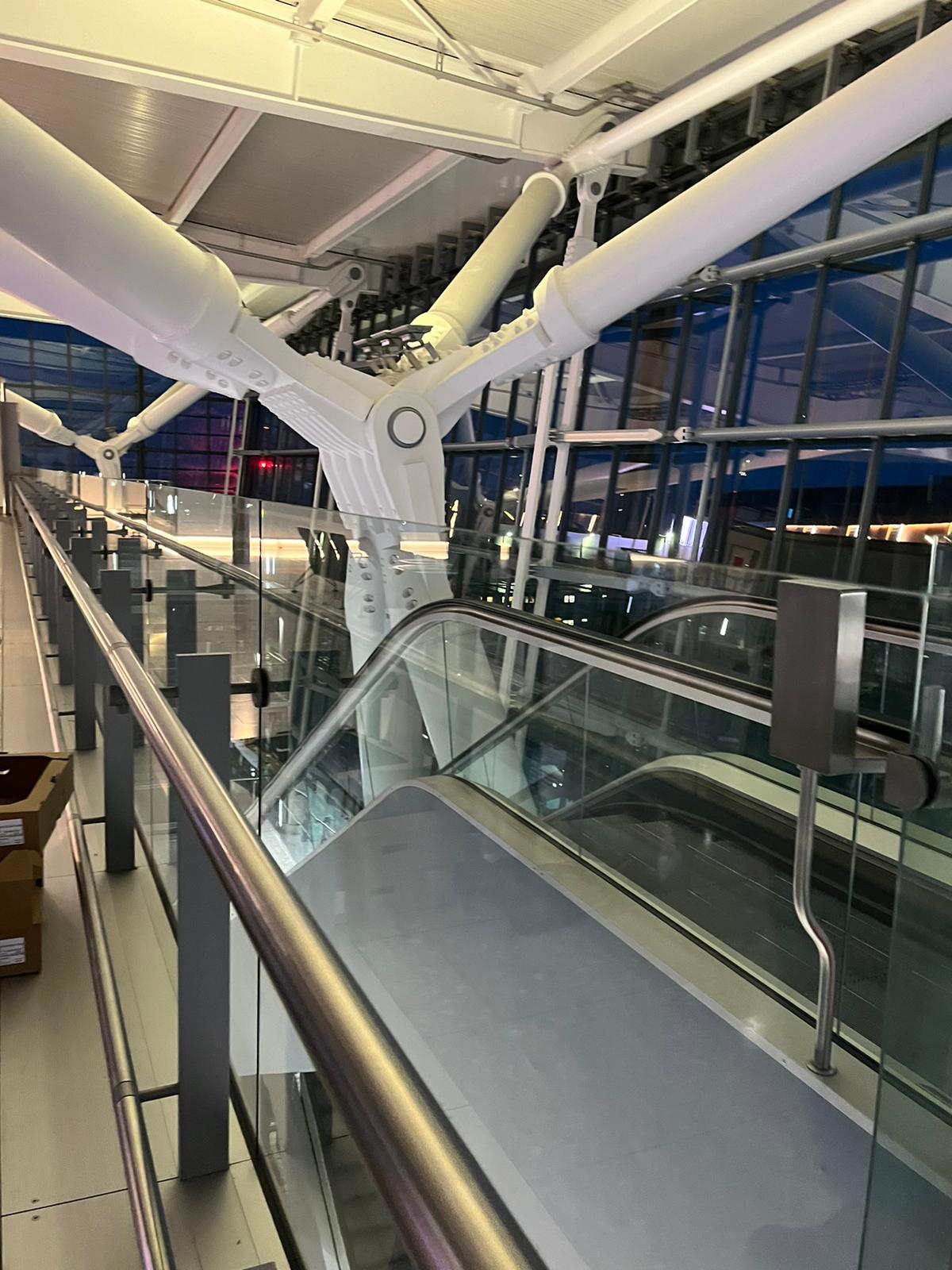 Our bigger issue that couldn’t be resolved but rather, had to be worked around was noises. Although having an empty terminal to yourself might make you think it’d be quiet as a mouse, there was still the background noise from all the electrics running, the cleaning staff doing their rounds, and construction taking place from 12-6am. Despite our best efforts there wasn’t actually much that we could do other than keeping an eye out for any oncoming hoovers or sweepers and wrapping up a shot just before they were within earshot, and in the case of the construction behind the scenes we could only stop and pick up around their erratic schedule.